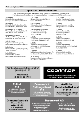 Nr. 9 - 29. September 2025 Informationen 21 Apotheken - Bereitschaftsdienst