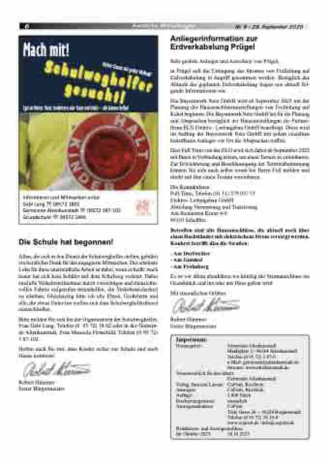 Amtliche Mitteilungen Nr. 9 - 29. September 2025 Anliegerinformation zur Erdverkabelung Prügel