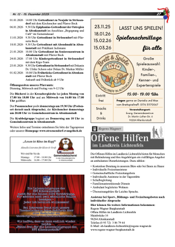 Weitere Infos und Termine entnehmen Sie bitte der Tagespresse oder unserer Homepage www.stroessendorf-evangelisch.de